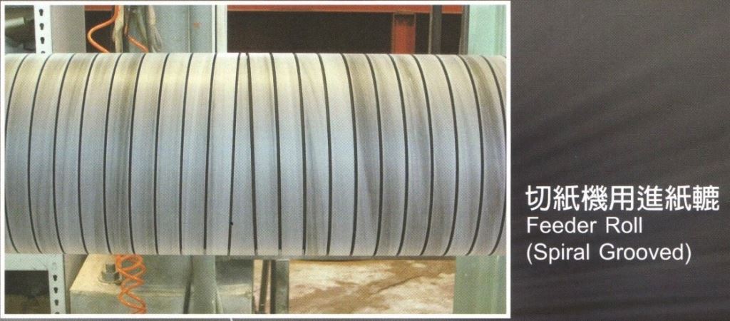 各種造紙滾輪包膠加工: 盲孔轆(Blind hole roll)、人造石(Stonite)、下壓水轆(Grooved bottom ptess roll)、 吸引壓水轆(Suction press roll)、押付轆(Touch roll)、黑鑽石(Black diamond)、毛毯轆(Feit roll)、 伏轆(Couch roll)、展開轆(Worm expander roll)、捲紙轆(Reel roll)、切紙機用進紙轆(Feeder roll)、 彎曲轆(Banana expander roll)、皮帶輪(Belt pulley)
